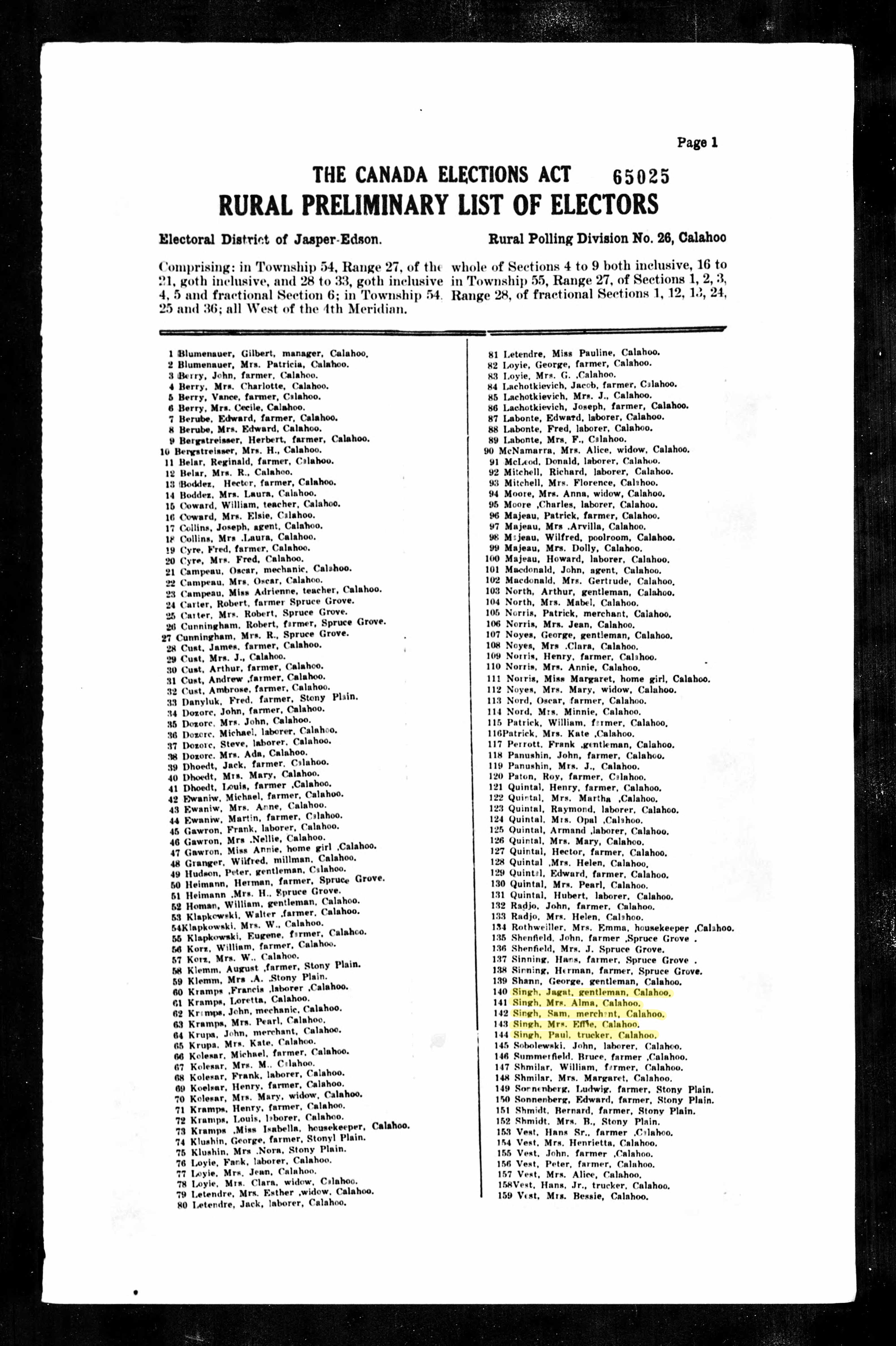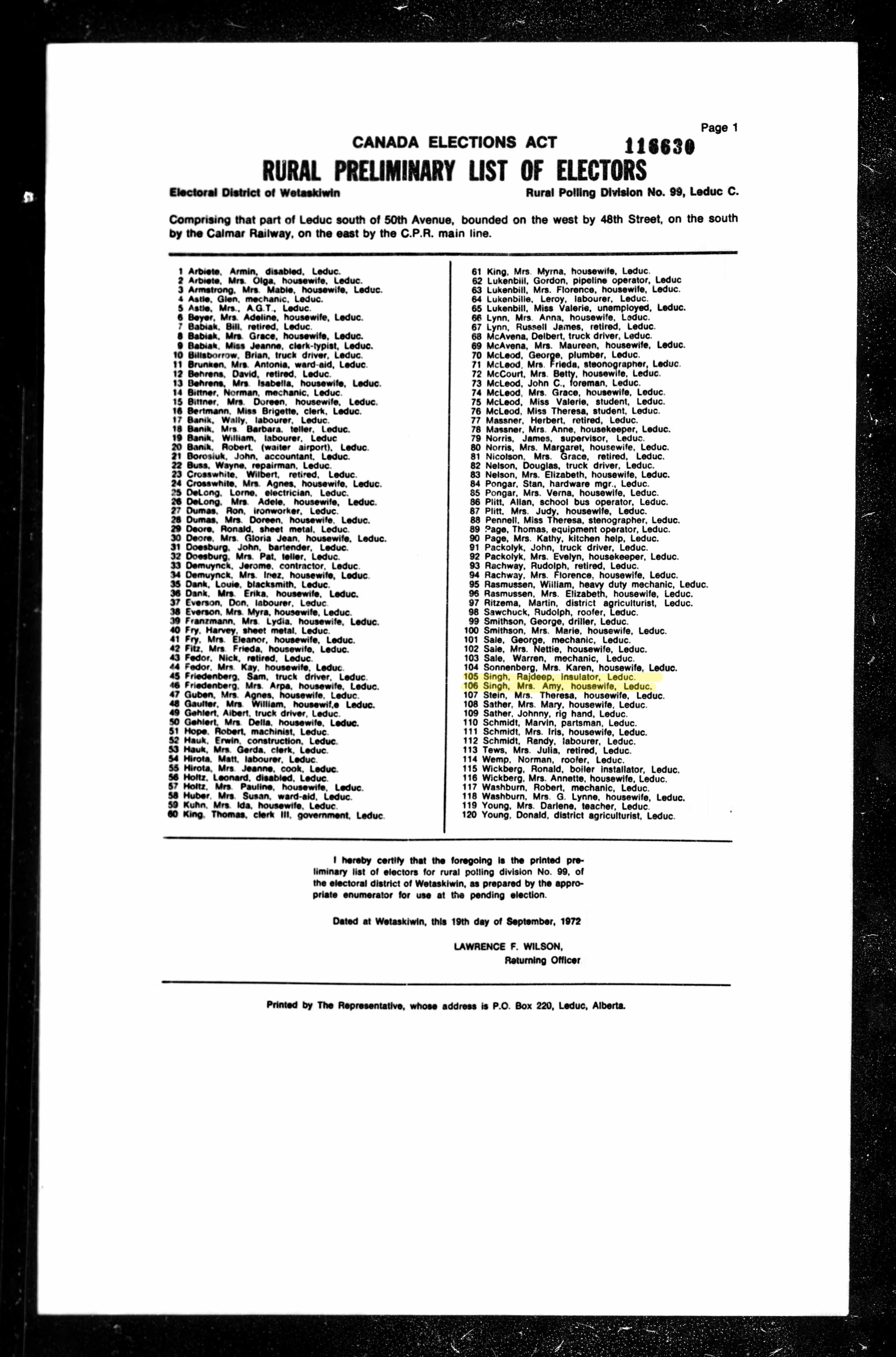 Ram Singh and Amelia Jackson, Registration of Marriage, Calgary, 1920