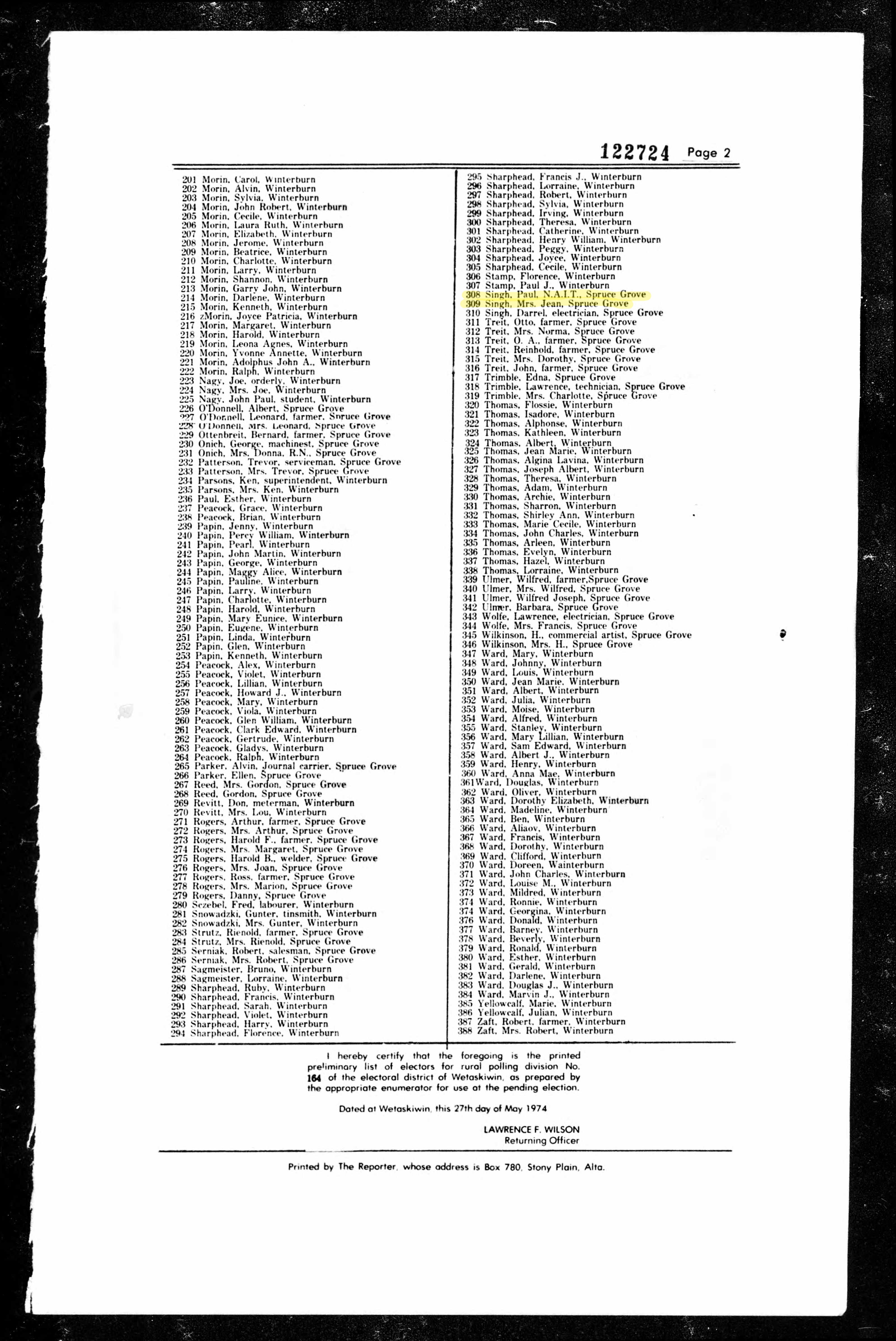 Paul Singh, Jean Singh, Spruce Grove, 1974